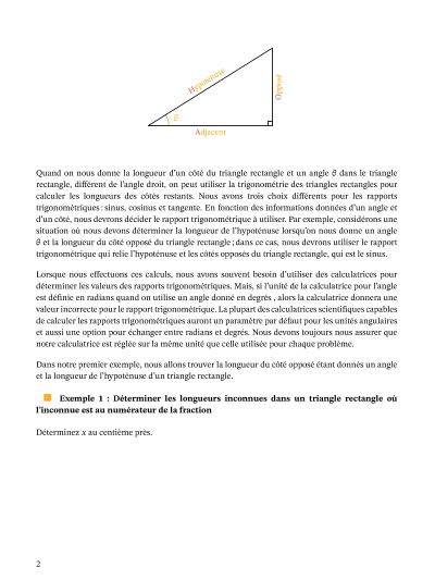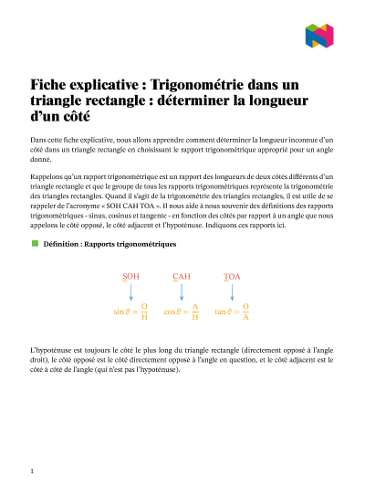 Dans cette leçon, nous allons apprendre comment déterminer une longueur de côté manquante dans un triangle rectangle en choisissant le rapport trigonométrique approprié pour un angle donné.