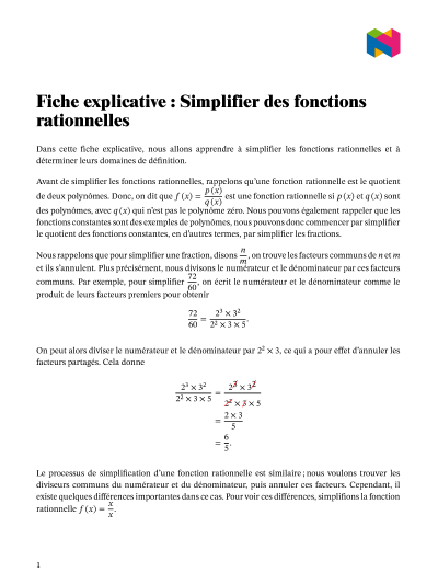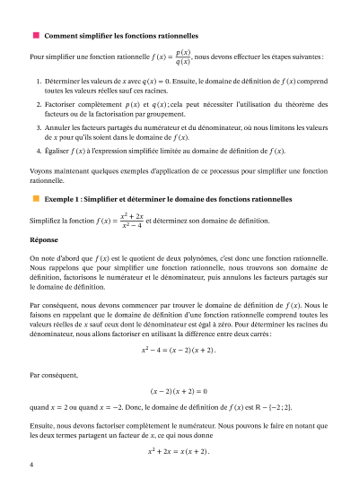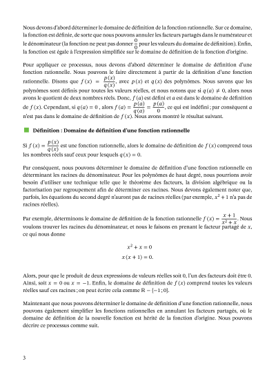 Dans cette leçon, nous allons apprendre comment simplifier des fonctions rationnelles et déterminer leurs ensembles de définition.