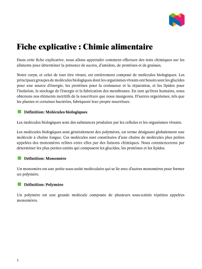 Dans cette leçon, nous allons apprendre comment effectuer des tests chimiques sur les aliments pour déterminer la présence de sucres, d’amidon, de protéines et de graisses.