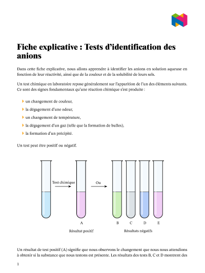 Dans cette leçon, nous allons apprendre comment identifier les ions négatifs en solution aqueuse d’après leur réactivité ainsi que la couleur et solubilité de leurs sels.