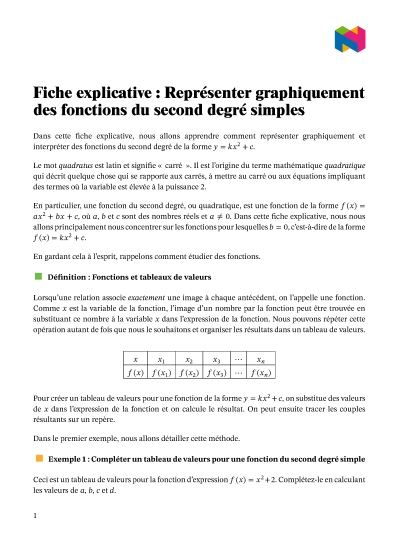 Dans cette leçon, nous allons apprendre comment représenter graphiquement et interpréter des fonctions du second degré de la forme 𝑦 = 𝑘𝑥⌃2 + 𝑐.