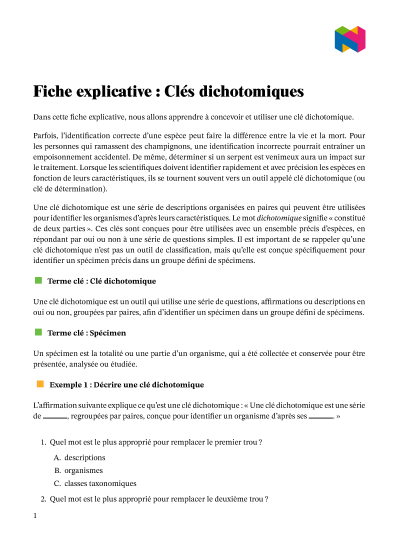 Dans cette leçon, nous allons apprendre à concevoir et utiliser une clé dichotomique.