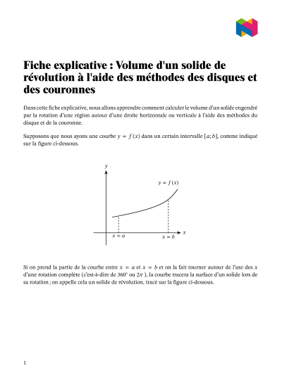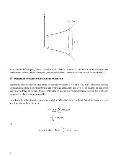 Dans cette leçon, nous allons apprendre comment calculer le volume d'un solide généré par la rotation d'une région autour d'une droite horizontale ou verticale en utilisant les méthodes des disques et des couronnes.