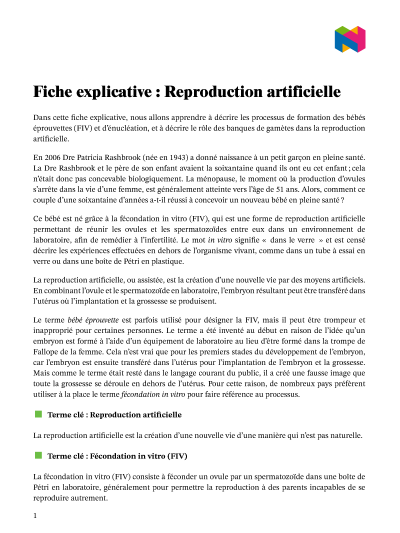Dans cette leçon, nous allons découvrir les processus de formation des bébés éprouvettes (FIV), et expliquer le rôle des banques de gamètes dans la reproduction artificielle.