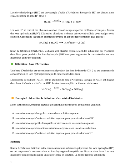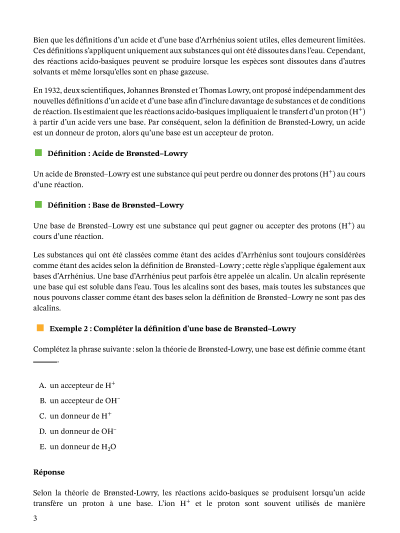 Dans cette leçon, nous allons apprendre à définir un acide et une base, à comprendre leurs propriétés et à identifier les espèces acides et basiques dans les réactions chimiques.