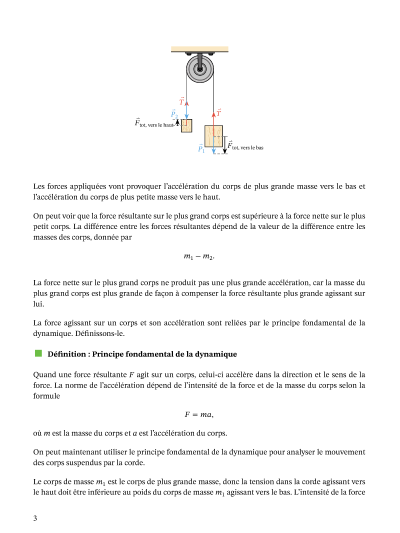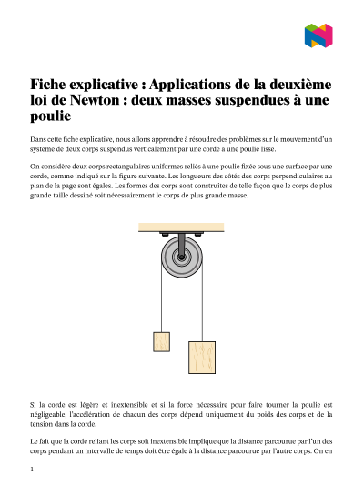 Dans cette leçon, nous allons apprendre comment résoudre des problèmes sur le mouvement d'un système de deux corps suspendus verticalement par une corde passant sur une poulie lisse.