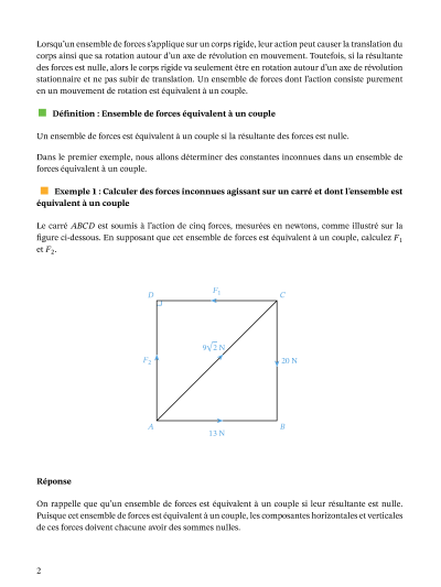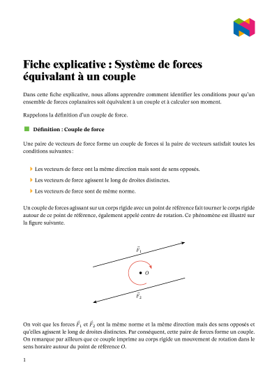 Dans cette leçon, nous allons apprendre comment identifier les conditions pour qu'un système de forces coplanaires soit équivalent à un couple, et comment déterminer son moment.