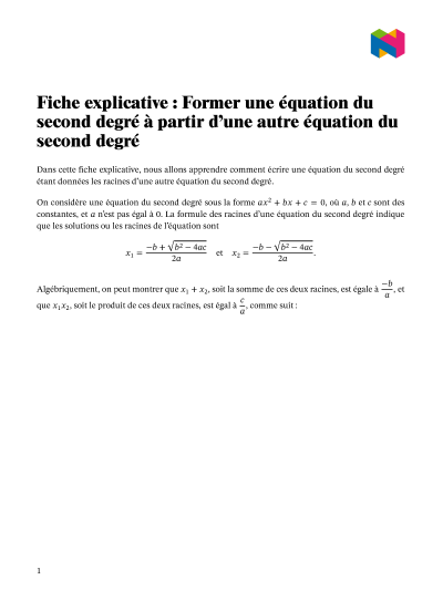 Dans cette leçon, nous allons apprendre comment écrire une équation du second degré étant données les racines d'une autre équation du second degré.
