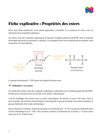 Dans cette leçon, nous allons apprendre à identifier et à nommer les esters, et à décrire leurs propriétés physiques.