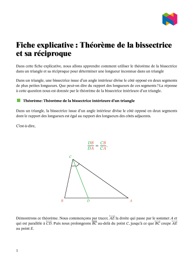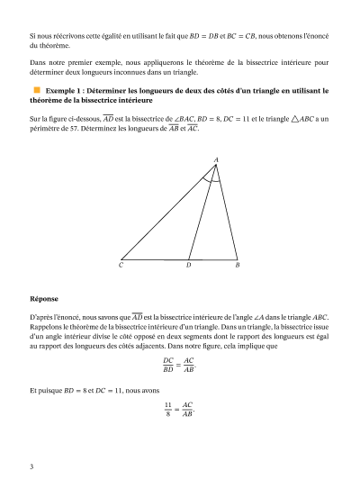 Dans cette leçon, nous allons apprendre comment utiliser le théorème de la bissectrice et sa réciproque pour déterminer une longueur de côté inconnue dans un triangle.