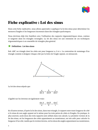 Dans cette leçon, nous allons apprendre comment appliquer la loi des sinus pour déterminer les mesures d'angles et les longueurs inconnues dans des triangles quelconques.