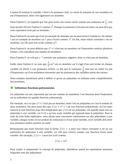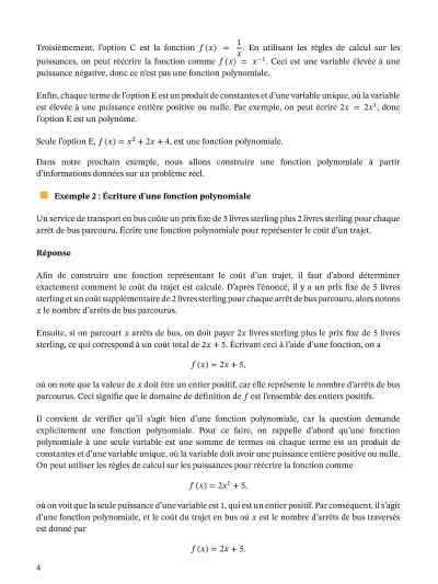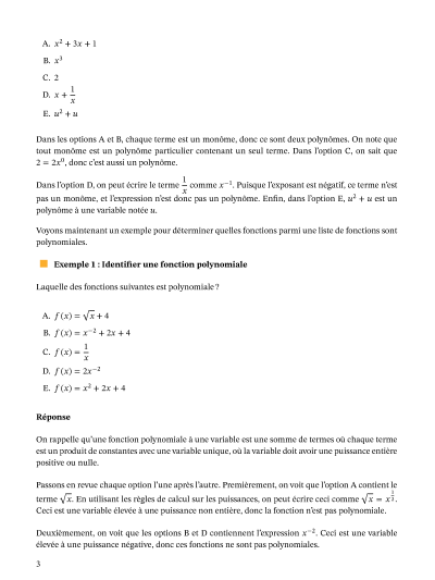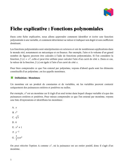 Dans cette leçon, nous allons apprendre comment identifier et écrire une fonction polynomiale à une variable, et comment déterminer sa valeur et indiquer son degré et son coefficient dominant.