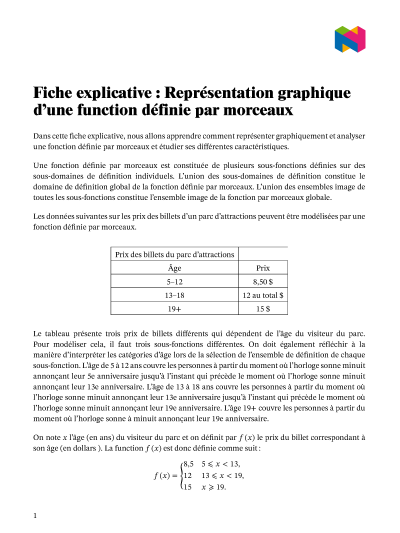 Dans cette leçon, nous allons apprendre à représenter graphiquement et à analyser une fonction définie par morceaux, et à étudier ses différentes caractéristiques.