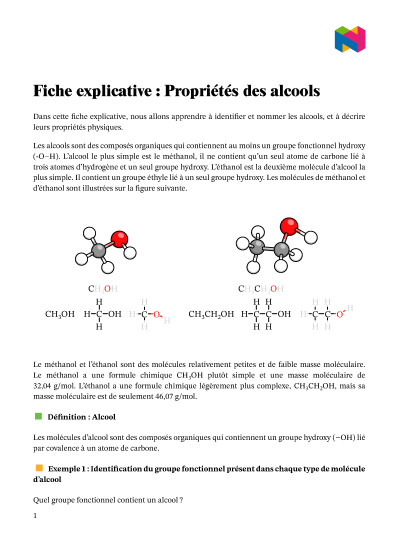 Dans cette leçon, nous allons apprendre à identifier et nommer les alcools, et à décrire leurs propriétés physiques.