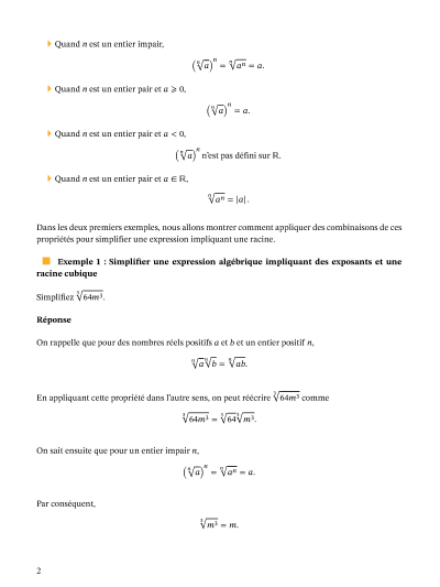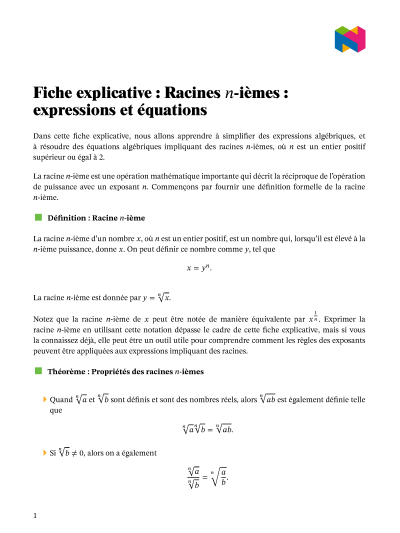 Dans cette leçon, nous allons apprendre à simplifier des expressions algébriques, et à résoudre des équations algébriques impliquant des racines 𝑛-ièmes, où 𝑛 est un entier positif supérieur ou égal à 2.