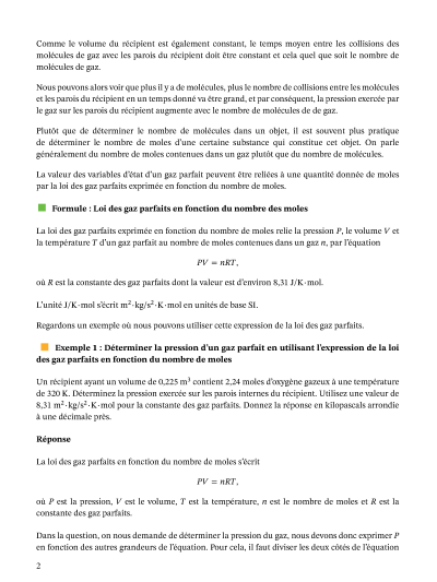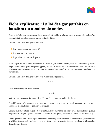 Dans cette leçon, nous allons apprendre à décrire la relation entre le nombre de moles d’un gaz parfait et les valeurs de ses propriétés générales.