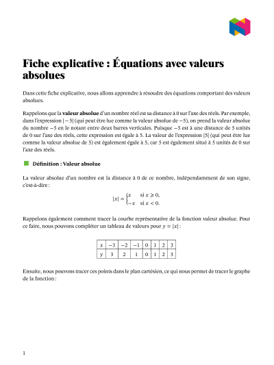 Dans cette leçon, nous allons apprendre comment résoudre des équations impliquant la valeur absolue.
