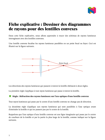 Dans cette leçon, nous allons apprendre comment dessiner des diagrammes de rayons lumineux interagissant avec des lentilles convexes.