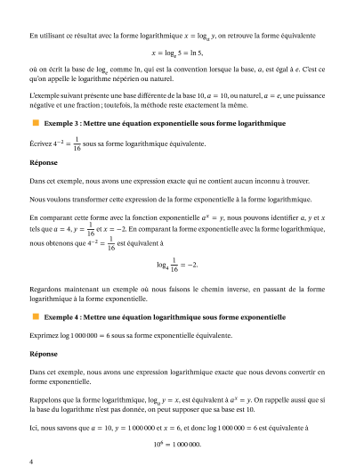 Dans cette leçon, nous allons apprendre comment convertir une équation exponentielle en équation logarithmique et vice-versa.