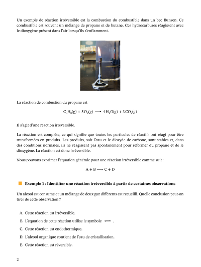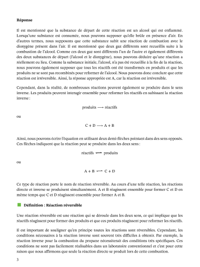 Lesson: Réactions réversibles et irréversibles Chimie • Third Year of Secondary School