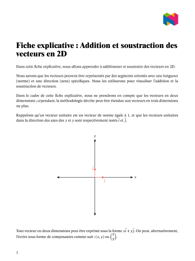 Dans cette leçon, nous allons apprendre comment additionner et soustraire des vecteurs en 2D.