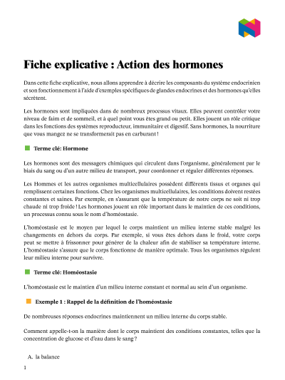 Dans cette leçon, nous allons apprendre comment décrire les composants et le fonctionnement du système endocrinien, en utilisant des exemples particuliers de glandes endocrines et des hormones qu’elles sécrètent.