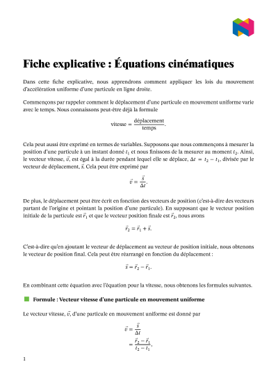 Dans cette leçon, nous allons apprendre comment appliquer les lois du mouvement rectiligne uniformément accéléré d'une particule.