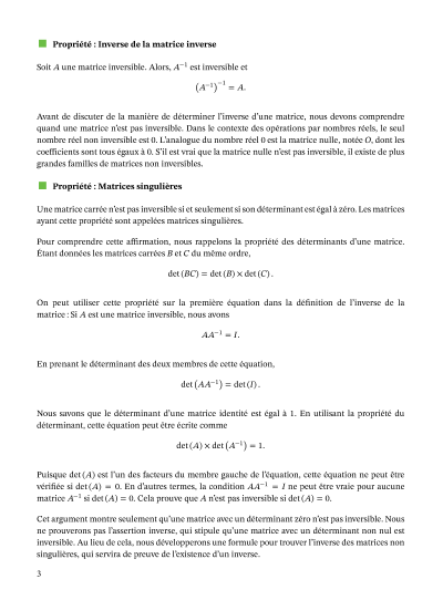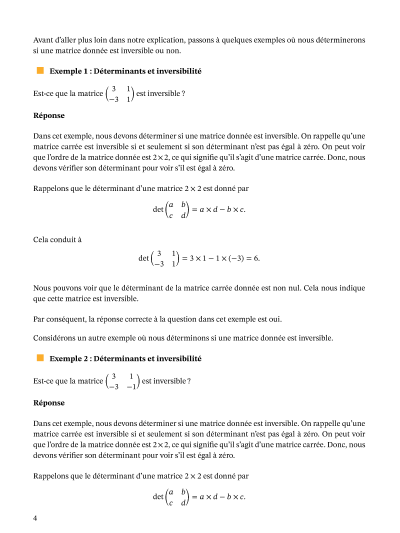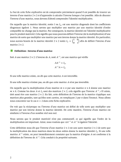 Dans cette leçon, nous allons apprendre comment vérifier si une matrice de taille 2 × 2 admet une inverse, et comment déterminer ensuite son inverse, si cela est possible.
