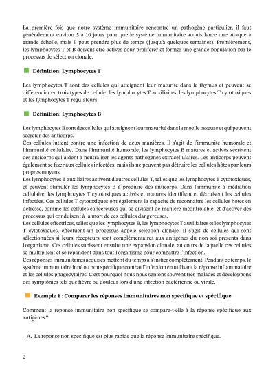 Lesson: Réponse immunitaire primaire et secondaire Biologie • Third Year of Secondary School