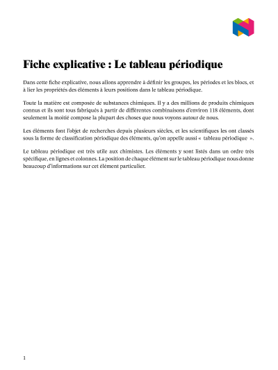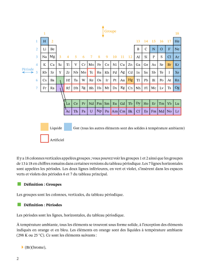 Dans cette leçon, nous allons apprendre comment définir les groupes, les périodes et les blocs, et à lier les propriétés des éléments à leurs positions dans le tableau périodique.