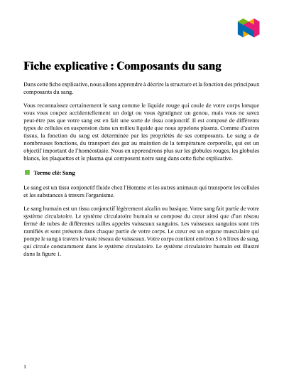 Dans cette leçon, nous allons apprendre à décrire la structure et la fonction des principaux composants du sang.