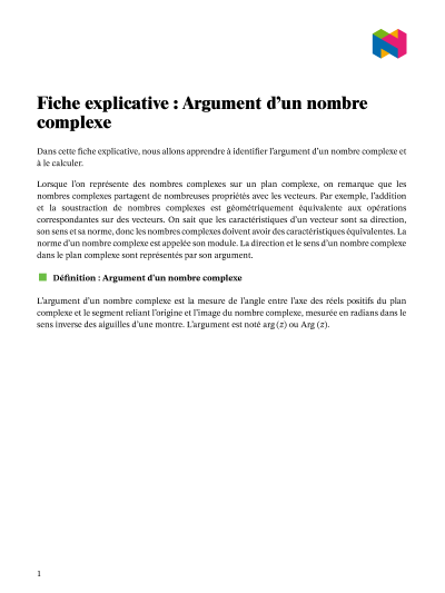 Dans cette leçon, nous allons apprendre à identifier l'argument d'un nombre complexe et à le calculer.