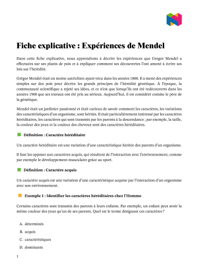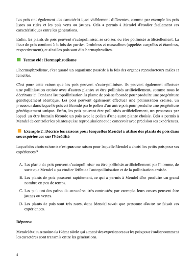Dans cette leçon, nous allons décrire les expériences que Gregor Mendel a faites sur ses plants de pois, et expliquer comment ses découvertes l’ont amené à écrire ses lois sur l'hérédité.