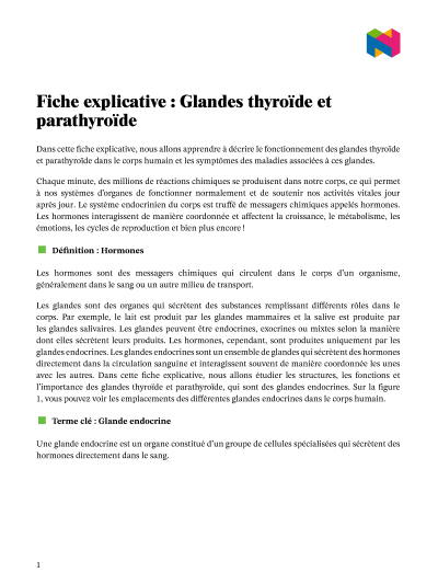 Dans cette leçon, nous allons apprendre comment décrire la fonction des glandes thyroïde et parathyroïde dans le corps humain, ainsi que les symptômes des maladies associées à ces glandes.