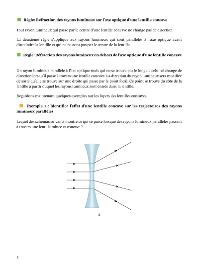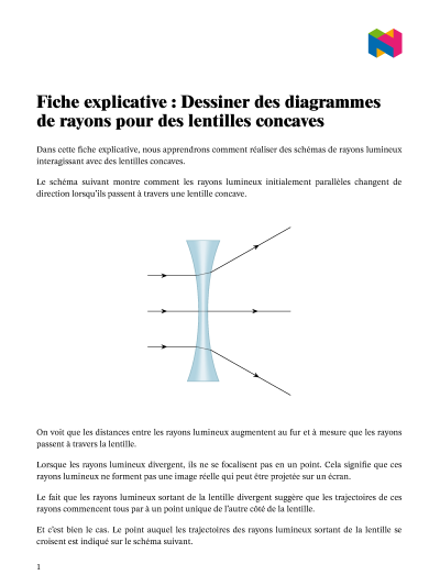 Dans cette leçon, nous allons apprendre comment dessiner des diagrammes de rayons lumineux interagissant avec des lentilles concaves.