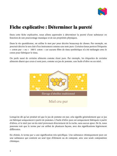 Dans cette leçon, nous allons apprendre comment déterminer la pureté d’une substance en fonction de sa proportion en termes de masse et de ses propriétés physiques.