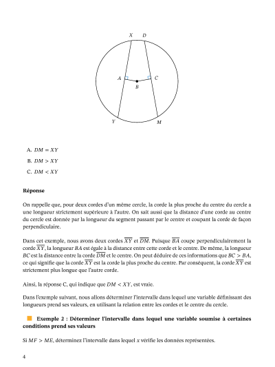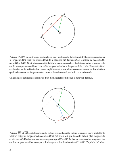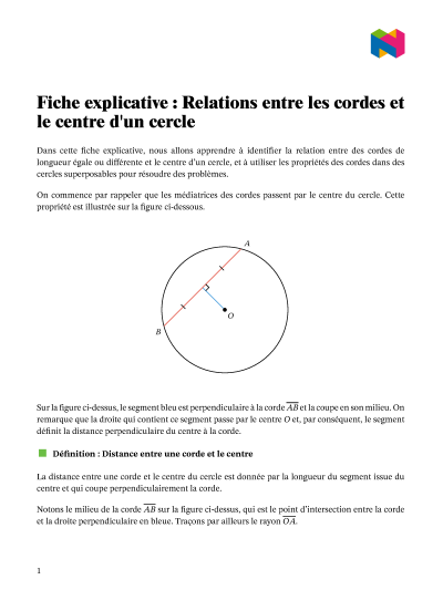 Dans cette leçon, nous allons apprendre comment identifier la relation entre des cordes de longueur égale ou différente et le centre d'un cercle, et comment utiliser les propriétés des cordes dans des cercles superposables pour résoudre des problèmes.