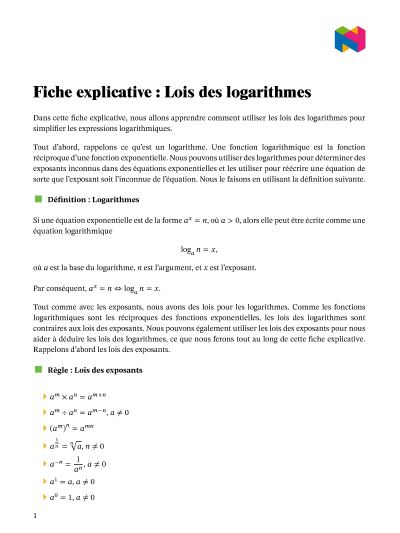 Dans cette leçon, nous allons apprendre comment utiliser les lois des logarithmes pour simplifier les expressions logarithmiques.