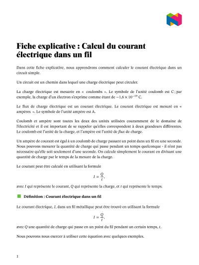 Dans cette leçon, nous allons apprendre comment calculer le courant électrique dans un circuit simple.