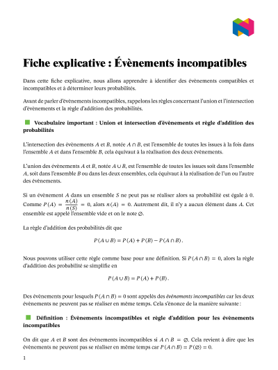 Dans cette leçon, nous allons apprendre à identifier les évènements incompatibles, et à déterminer leurs probabilités.
