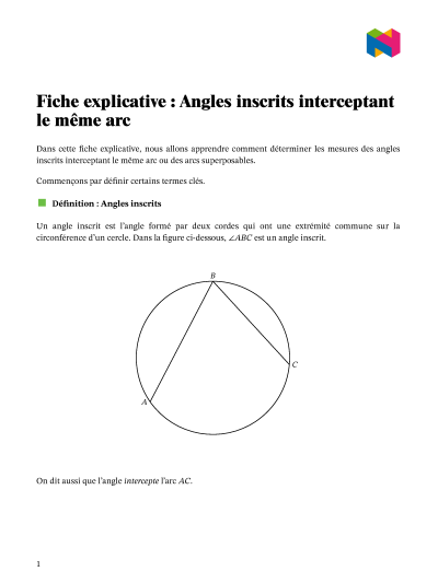 Dans cette leçon, nous allons apprendre comment déterminer les mesures des angles inscrits interceptant le même arc ou des arcs superposables.