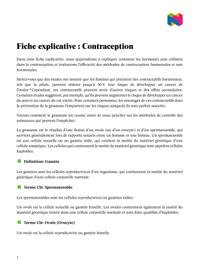 Dans cette leçon, nous allons expliquer l'utilisation des hormones pour la contraception, et évaluer l’efficacité des méthodes de contraception hormonales et non hormonales.